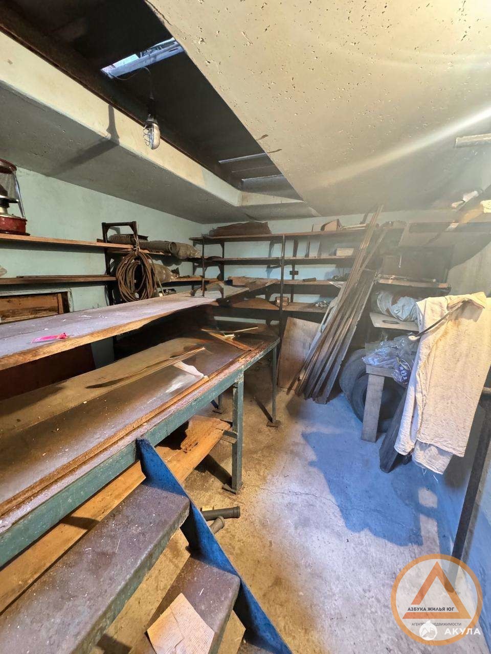 - В цоколе находится мастерская комната с стеллажами, сан.узел, раковина, баня;
