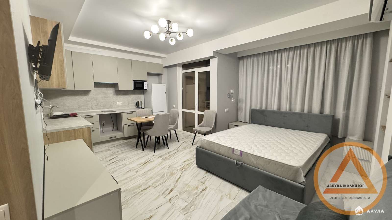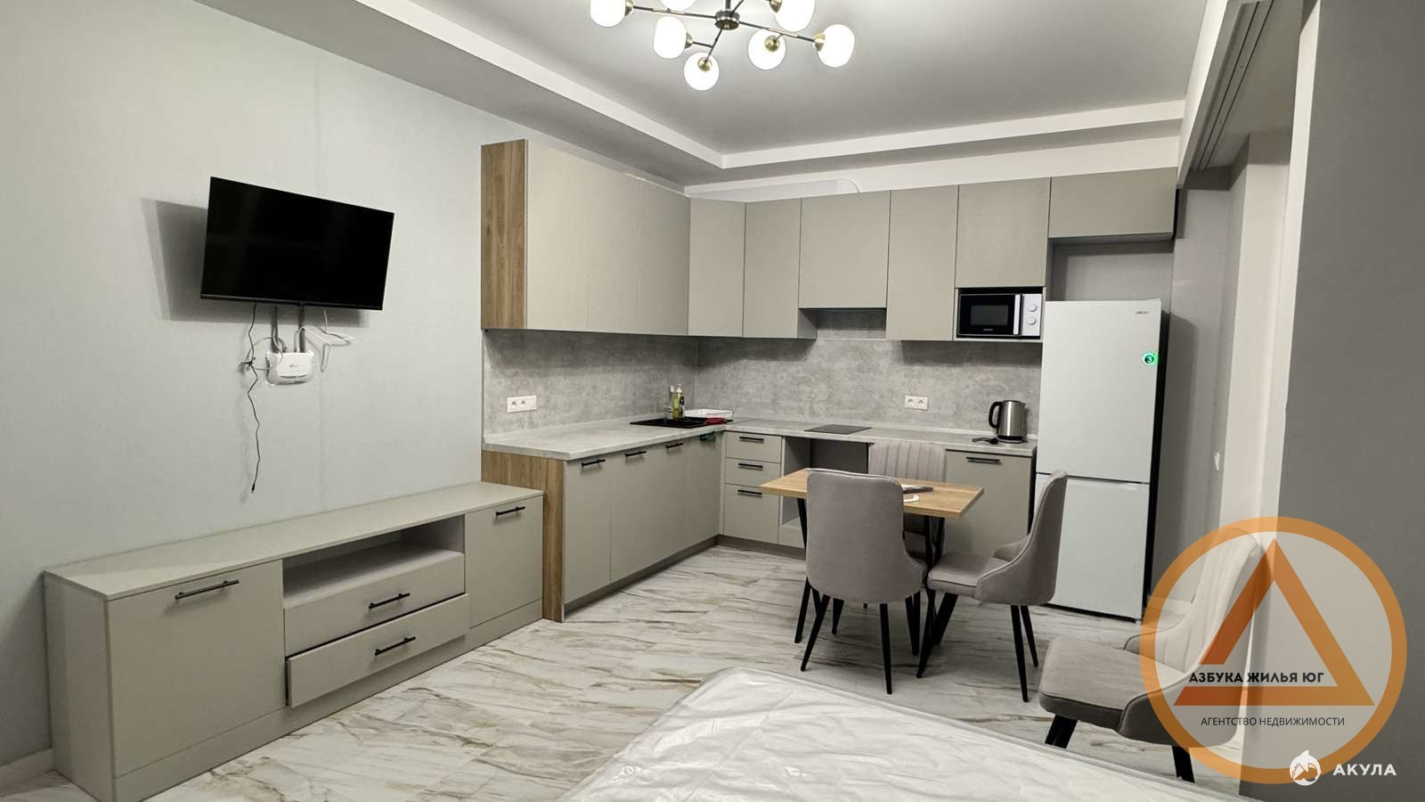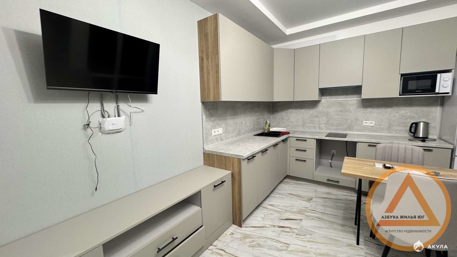 - Современная кухня-гостинная со всей необходимой техникой, большой телевизор, зона отдыха.